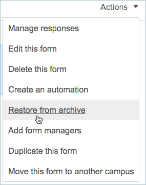 Privilege Restriction: Only a Form Admin can archive an old Form or restore it. Once a Form is archived, you will still be able to edit and manage as normal.